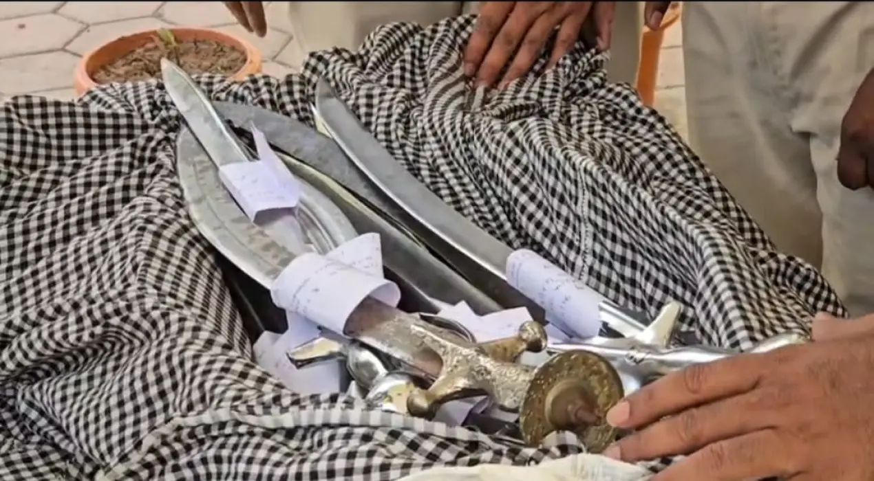 सूचना मिलते ही थाना प्रभारी प्रवीण आर्य के नेतृत्व में पुलिस टीम ने मौके पर पहुंचकर घेराबंदी की और आरोपी को पकड़ लिया। तलाशी के दौरान उसके पास मौजूद सफेद बोरे और कपड़ों में छिपाकर रखी गई कुल 29 धारदार लोहे की तलवारें बरामद हुईं।
