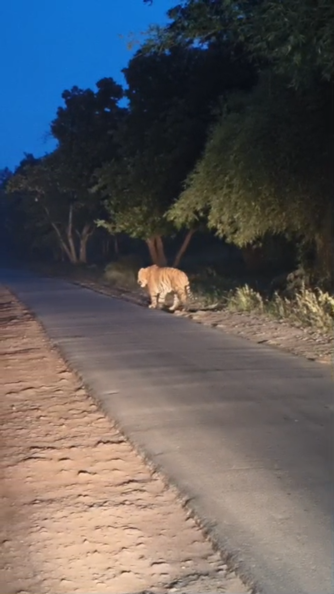 मानपुर सड़क पर भोर में टहलता दिखा बाघ, वीडियो हुआ वायरल