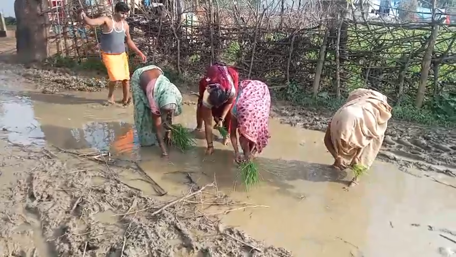 Umaria News: कीचड़ में नहीं दिखा विकास, तो महिलाओं ने सड़क पर बो दिया धान