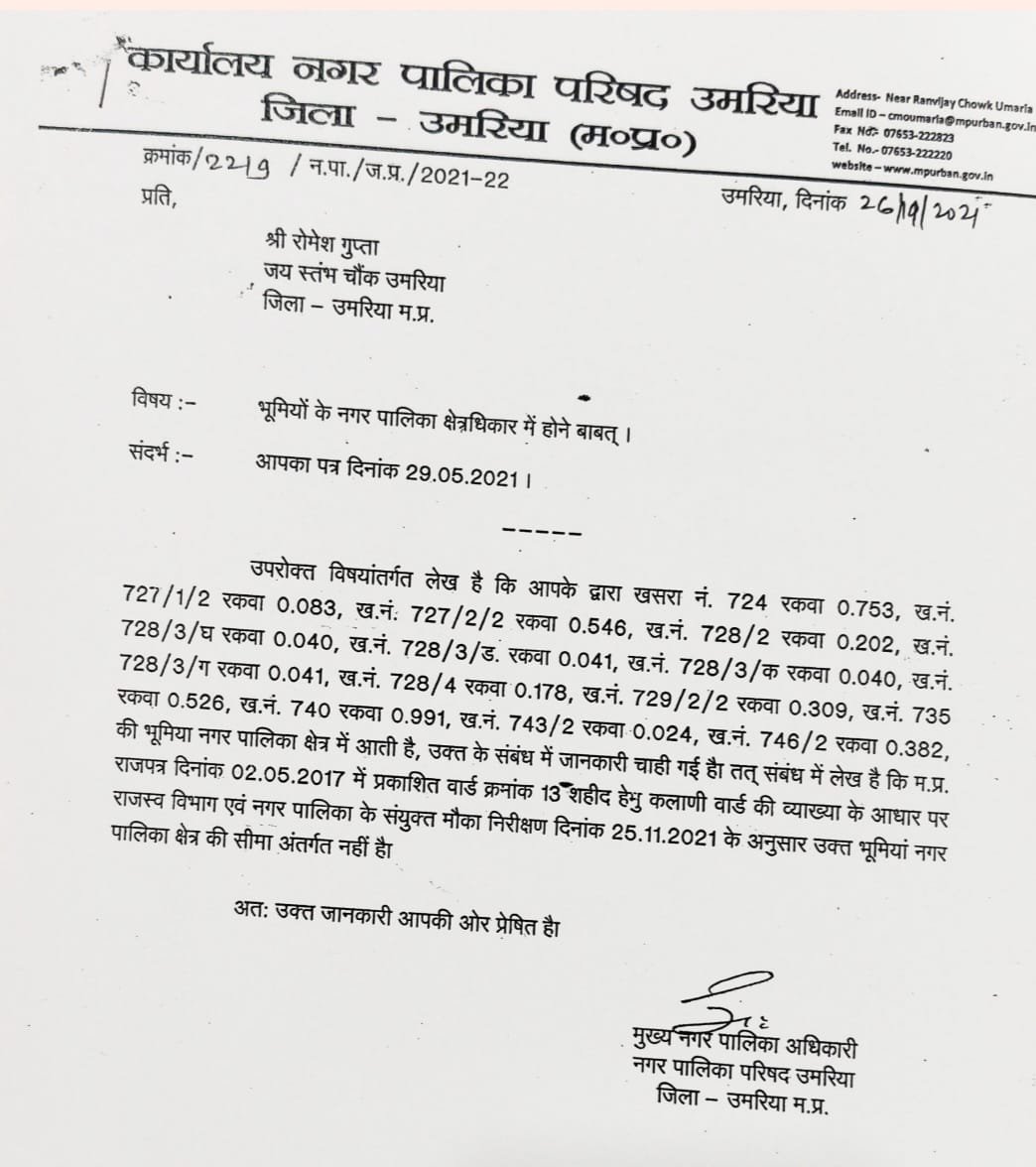 शहरी-ग्रामीण जमीन विवाद पर फैलाई गई अफवाहें झूठी, प्रशासन ने तथ्यों के साथ किया खंडन उमरिया तपस गुप्ता (7999276090) तहसीलदार बांधवगढ़ की छवि ...