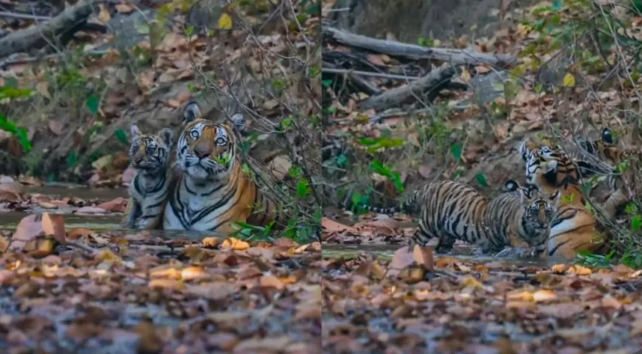 चारों शावक बेहद चंचल अंदाज में कभी पानी में छलांग लगाते दिखे, तो कभी मां के आसपास खेलते नजर आए। उनकी मासूम हरकतों ने इस वीडियो को और भी खास बना दिया है। मां बाघिन पूरे समय सतर्क नजर आई और हर पल अपने शावकों पर नजर रखती दिखी, जो जंगल के जीवन का एक महत्वपूर्ण हिस्सा है।