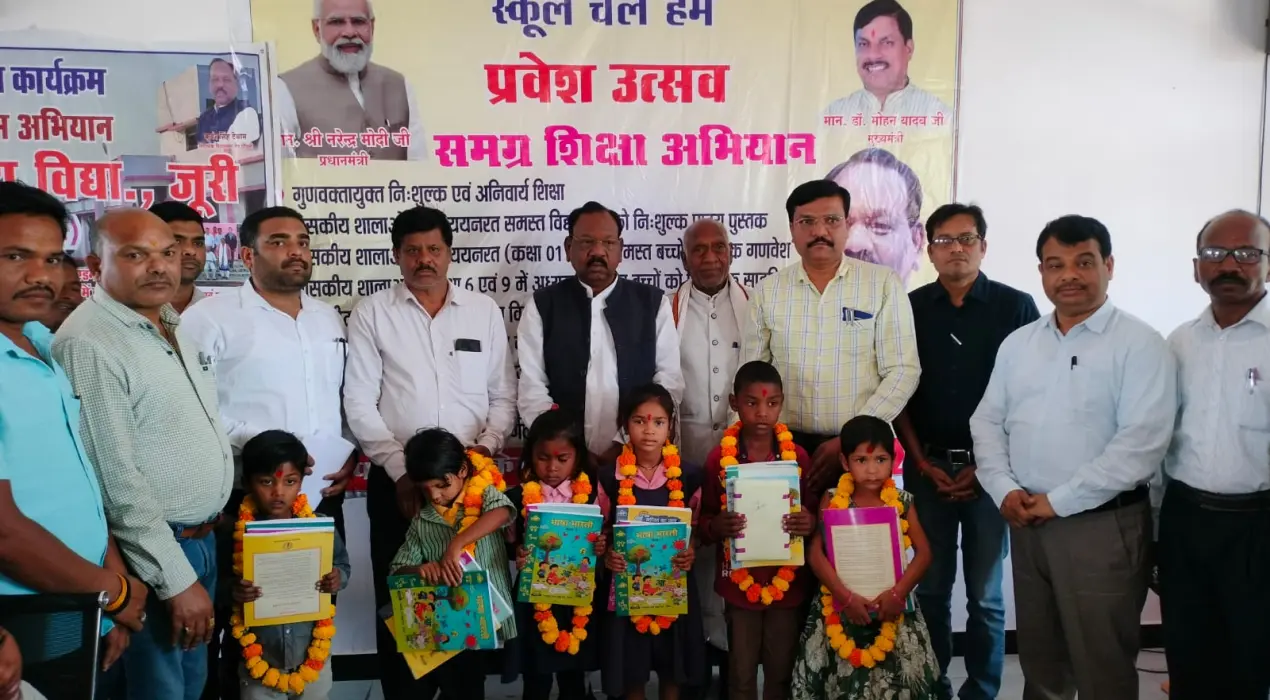 एमपी के सीधी जिले के कुसमी विकासखंड अंतर्गत शासकीय उच्चतर माध्यमिक विद्यालय जूरी में बुधवार को “स्कूल चले हम” प्रवेश उत्सव कार्यक्रम उत्साह और उमंग के साथ आयोजित किया गया। कार्यक्रम में धौहनी विधायक कुंवर सिंह टेकाम, एसडीएम कुसमी शैलेंद्र द्विवेदी, सीईओ ज्ञानेंद्र मिश्रा सहित कई जनप्रतिनिधि, अधिकारी, शिक्षक, अभिभावक और बड़ी संख्या में छात्र-छात्राएं मौजूद रहे।