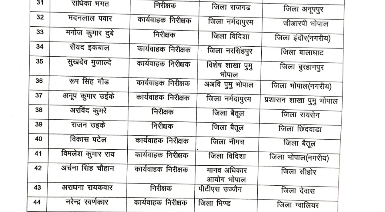 मध्य प्रदेश पुलिस में बड़ा प्रशासनिक फेरबदल,64 निरीक्षकों के ट्रांसफर, कई जिलों में नई तैनाती