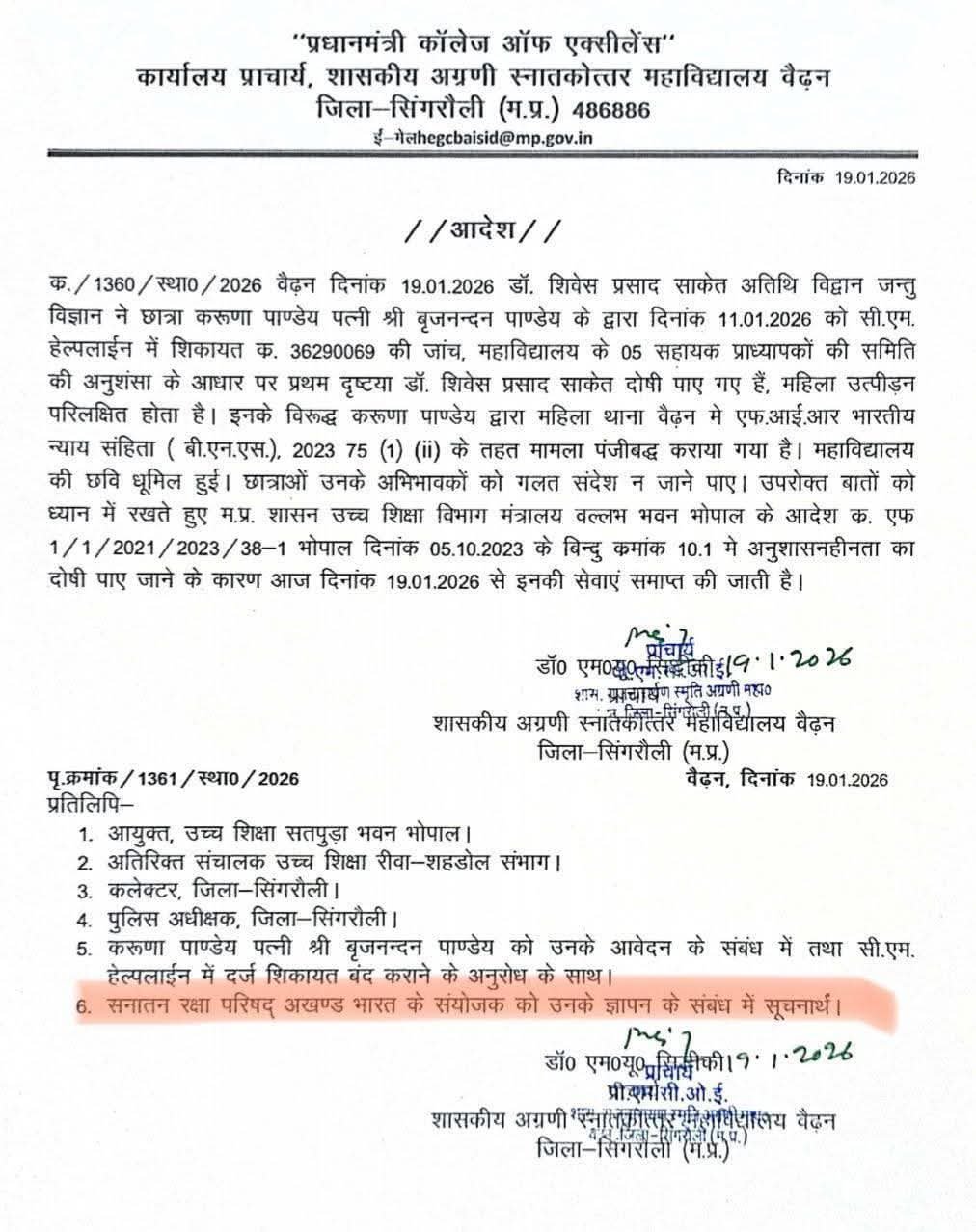 Mp crime:कॉलेज में की थी प्रोफेसर ने छेड़छाड़,अब नौकरी से निकाला