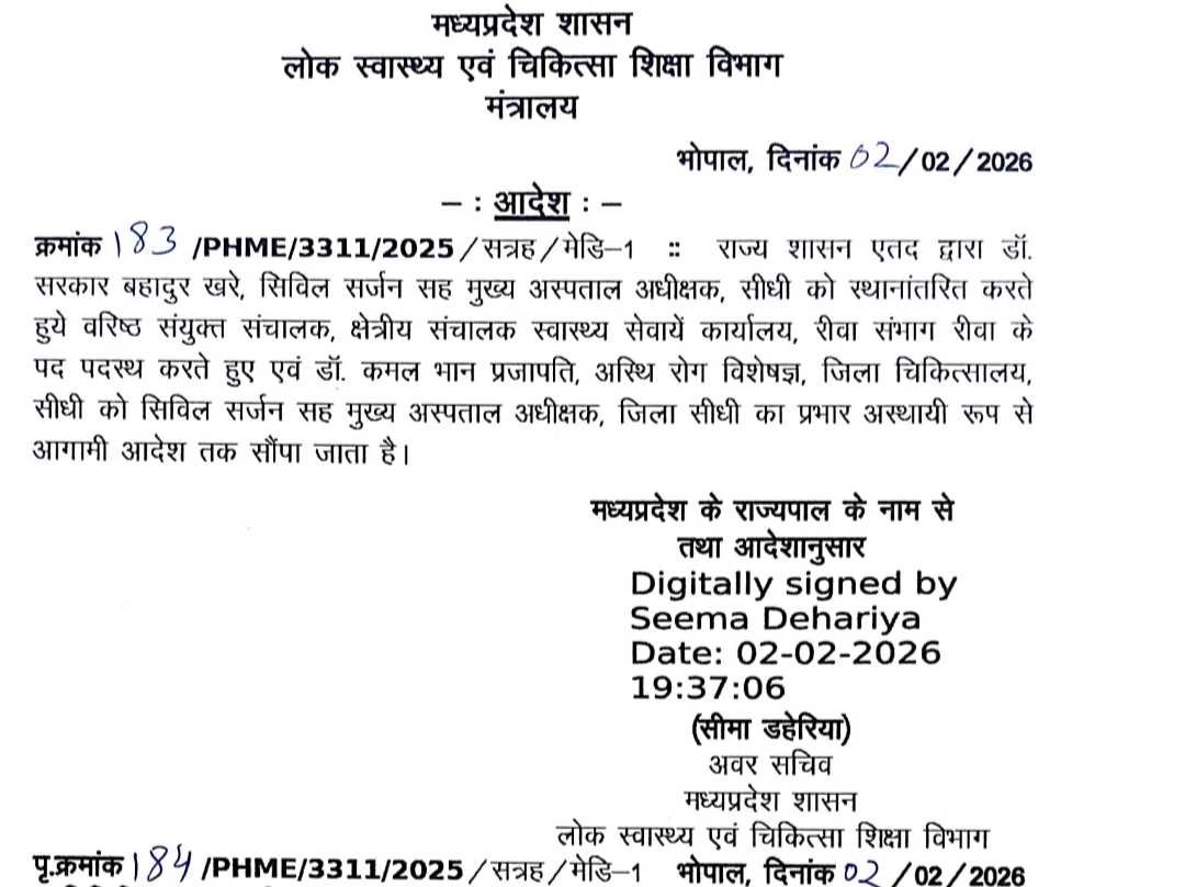 विवादों में घिरे डॉक्टर एस.बी. खरे का transfer, शिवसेना प्रदेश उपाध्यक्ष विवेक पांडे द्वारा कालिख पोतने के बाद आया आदेश भोपाल/सीधी। मध्यप्रदेश शासन के ...
