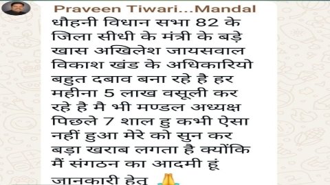 “₹5 लाख की ‘मासिक भक्ति’! BJP के मंत्री पर वसूली का आरोप, और आरोप भी किसी विपक्षी ने नहीं बल्कि अपने ही मंडल अध्यक्ष ने जड़ दिया”