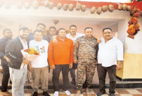 Sidhi news:देश की सेवा के बाद सोनवर्षा के लाल का हुआ घोघरा मंदिर में भव्य स्वागत