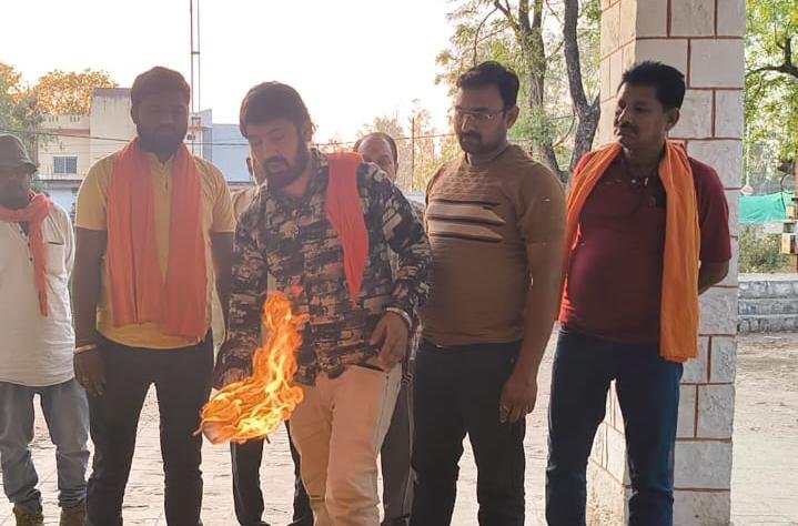 Sidhi news:शिवसेना का विरोध: राणा सांगा के खिलाफ बयान देने वाले सपा सांसद का पोस्टर जलाया