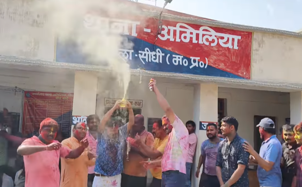 Sidhi news:अमिलिया थाना में पुलिस ने जमकर खेली होली