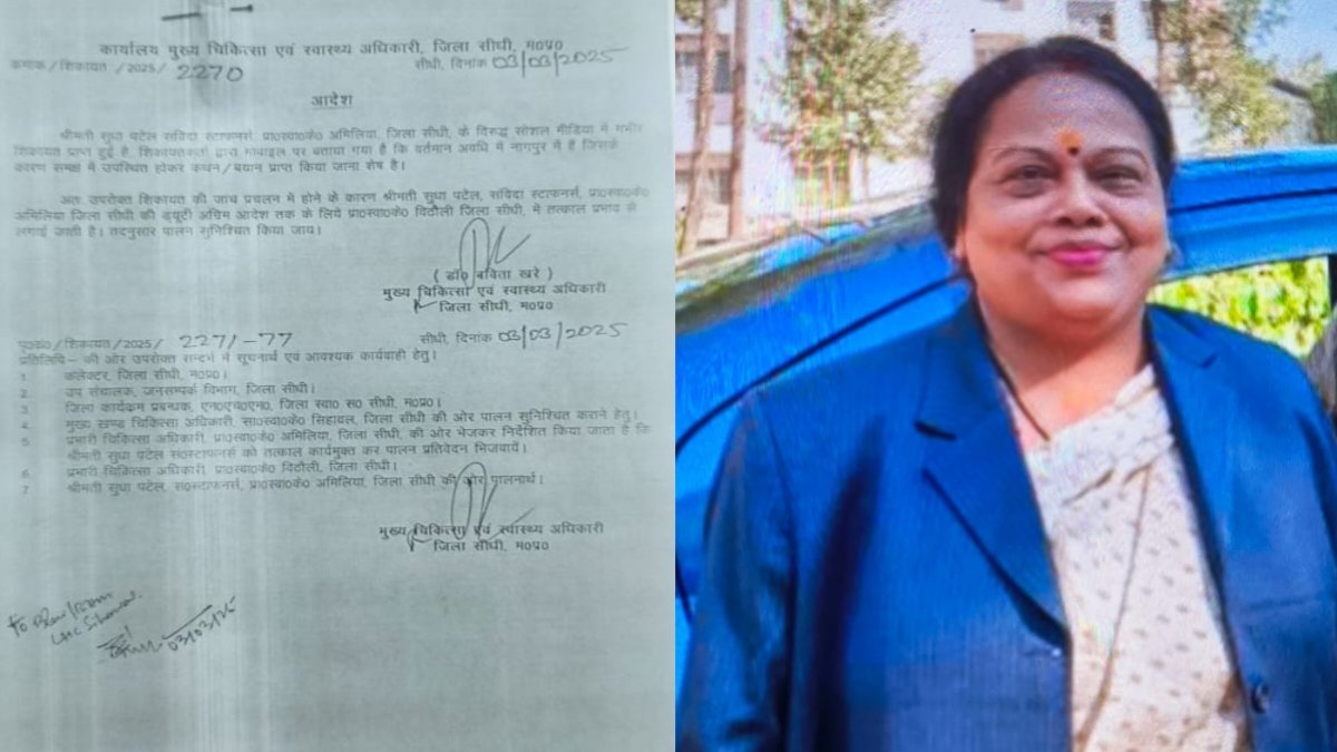 Sidhi news:स्टाफ नर्स सुधा पटेल का तबादला, सीएमएचओ बबीता खरे ने जारी किए आदेश