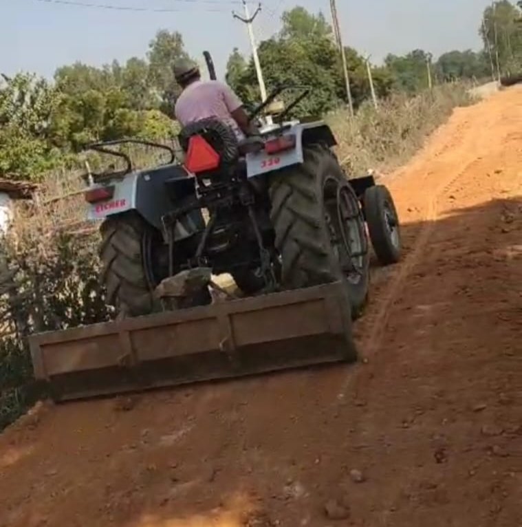 Sidhi news:सरपंच का कारनामा, पूर्व से निर्मित सड़क में कराया जा रहा मुरूम का छिड़काव