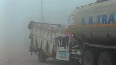 घने कोहरे ने बढ़ाया खतरा,रीवा–सीधी NH-39 पर भीषण सड़क हादसा, पिकअप पेट्रोलियम टैंकर में घुसी