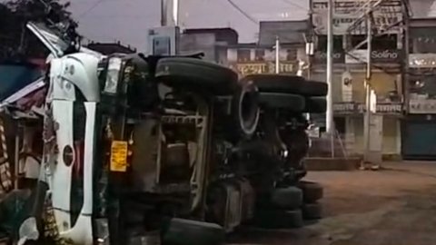 Sidhi news:सुबह-सुबह गांधी चौराहे पर रेत से लदा ट्रक पलटा, चालक फरार, आधे घंटे में रेत गायब, जांच में जुटी पुलिस Sidhi news:जिले के ...
